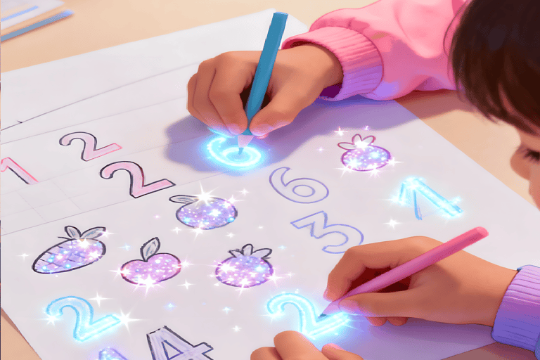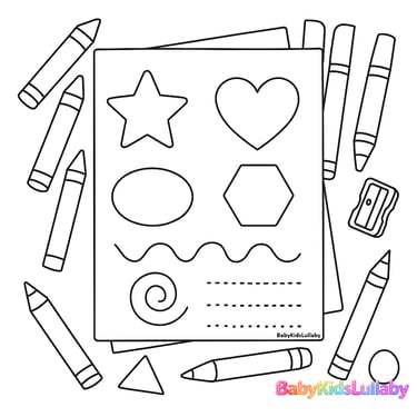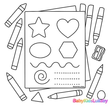 Children explore lines, shapes, and colors while practicing control, creativity, and early pre‑writing movements.