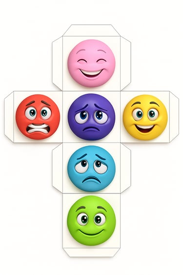 This printable Emotion Cube helps children explore and express their feelings in a playful, hands-on way. Each face shows a colorful cartoon emotion — joy, calm, sadness, worry — designed for all ages.